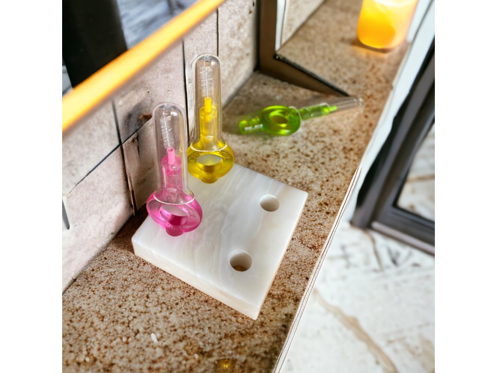 Stojánek pro Vaše mezizubní pomůcky. Můžete umístit až 4 mezizubní kartáčky všech značek i velikostí.