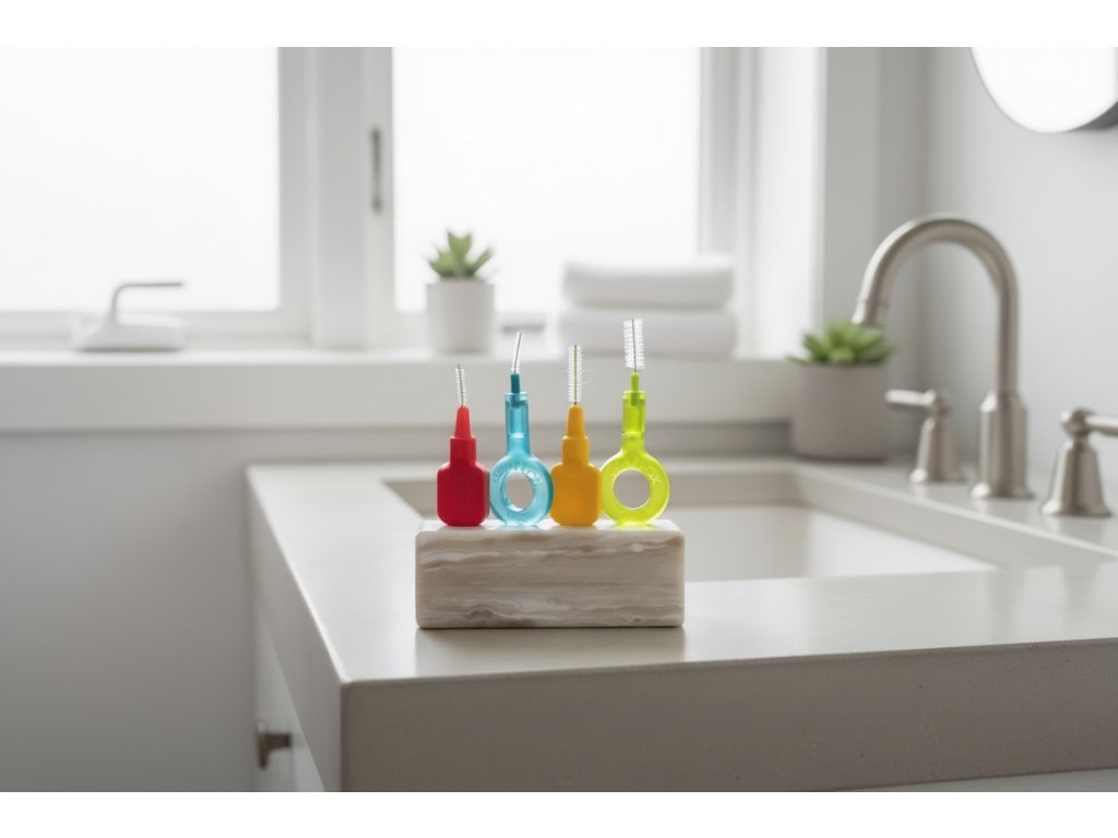 Jedinečný stojánek vhodné pro všechny druhy mezizubních kartáčků.