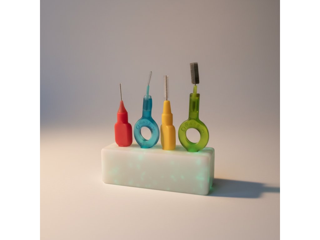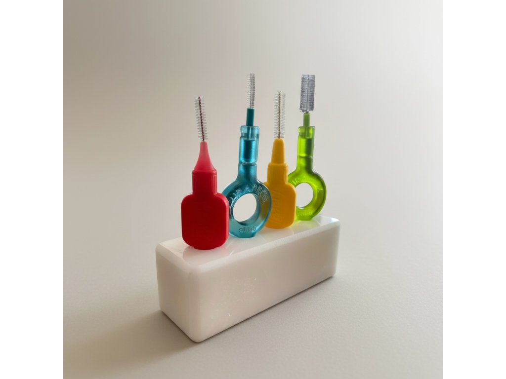 Stojánek pro Vaše mezizubní pomůcky. Můžete umístit až 4 mezizubní kartáčky všech značek i velikostí.