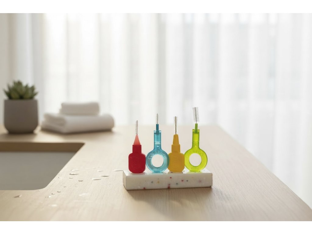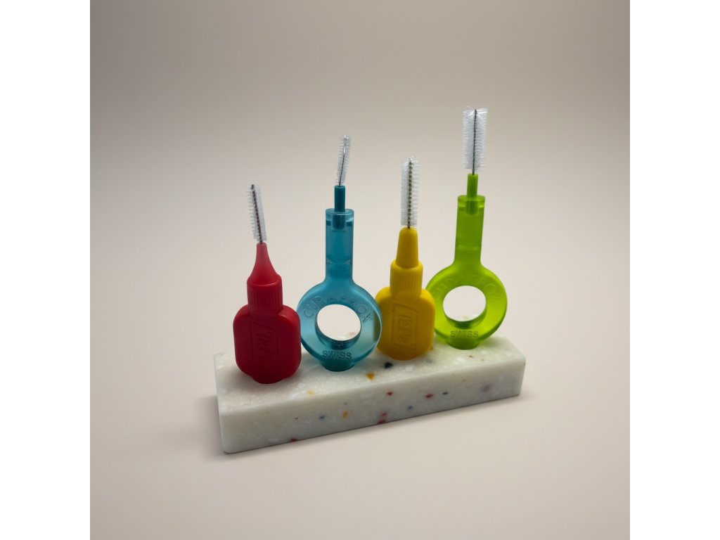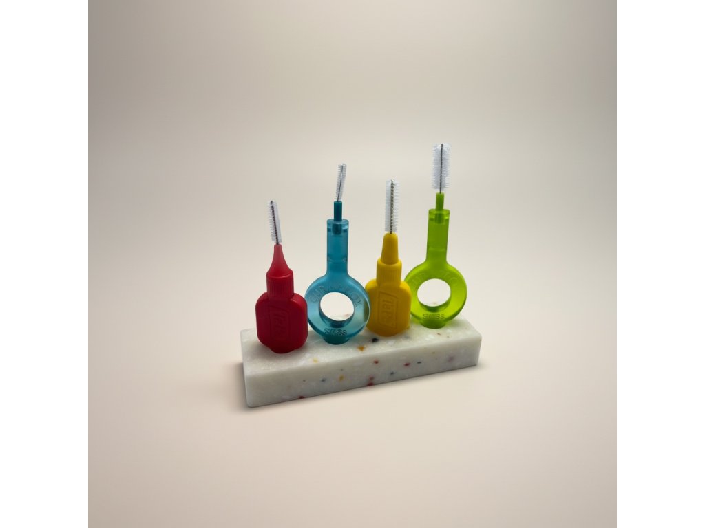 Stojánek pro Vaše mezizubní pomůcky. Můžete umístit až 4 mezizubní kartáčky všech značek i velikostí.