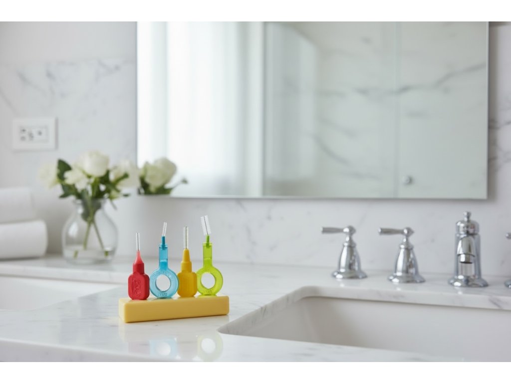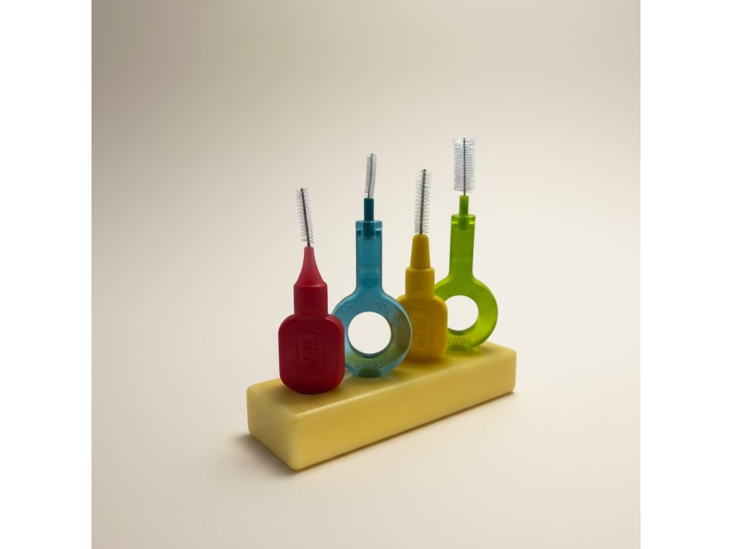 Stojánek pro Vaše mezizubní pomůcky. Můžete umístit až 4 mezizubní kartáčky všech značek i velikostí.