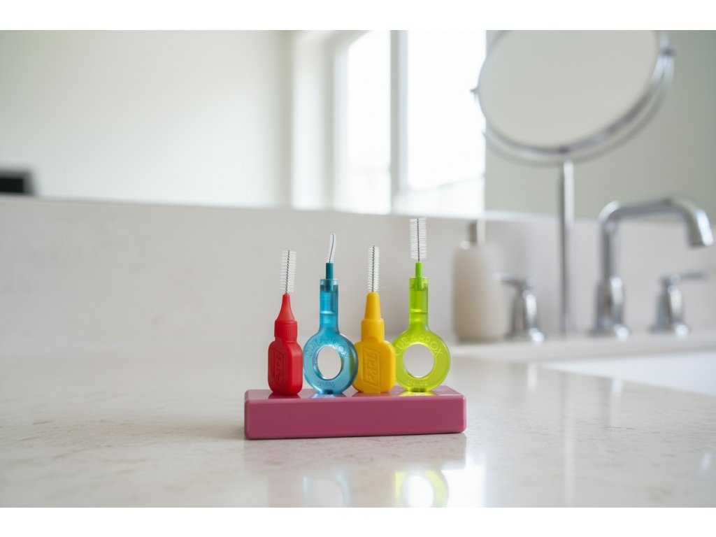 Stojánek pro Vaše mezizubní pomůcky. Můžete umístit až 4 mezizubní kartáčky všech značek i velikostí.